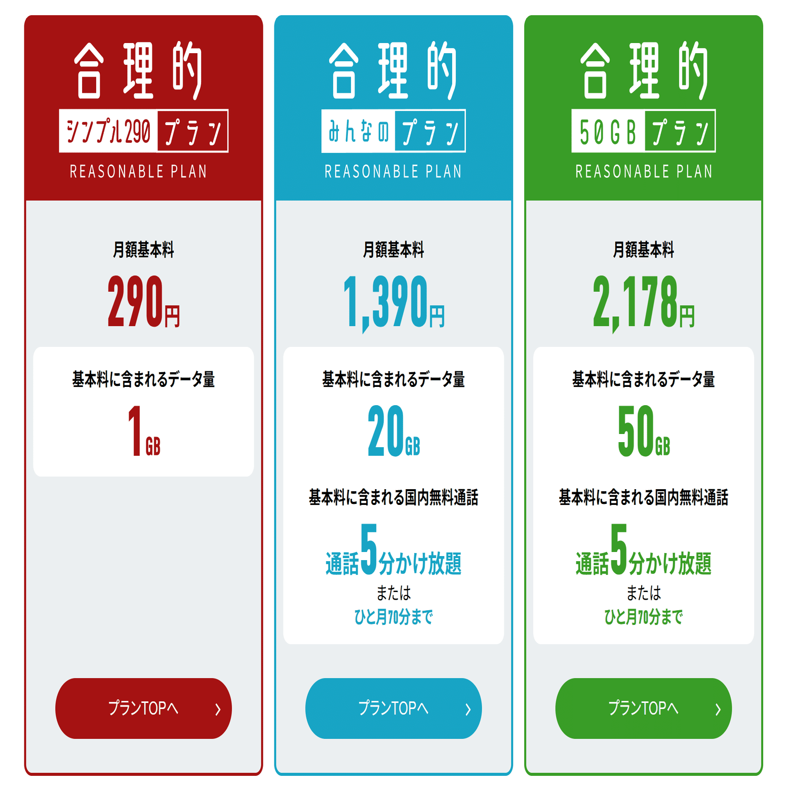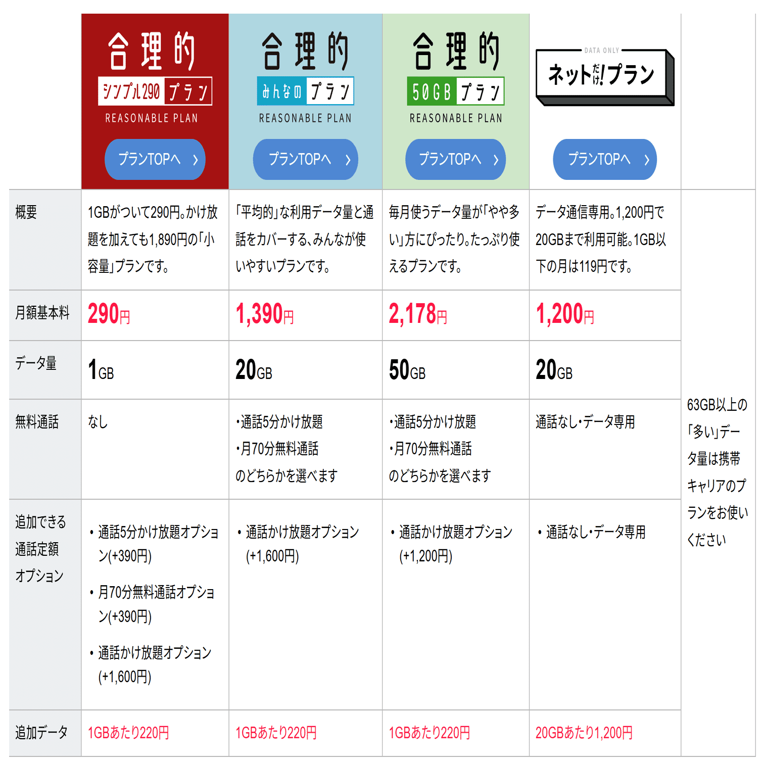 まずプラン選択。この中から選ぶことになります。基本は合理的みんなのプラン(1,390円)のやつでOK。