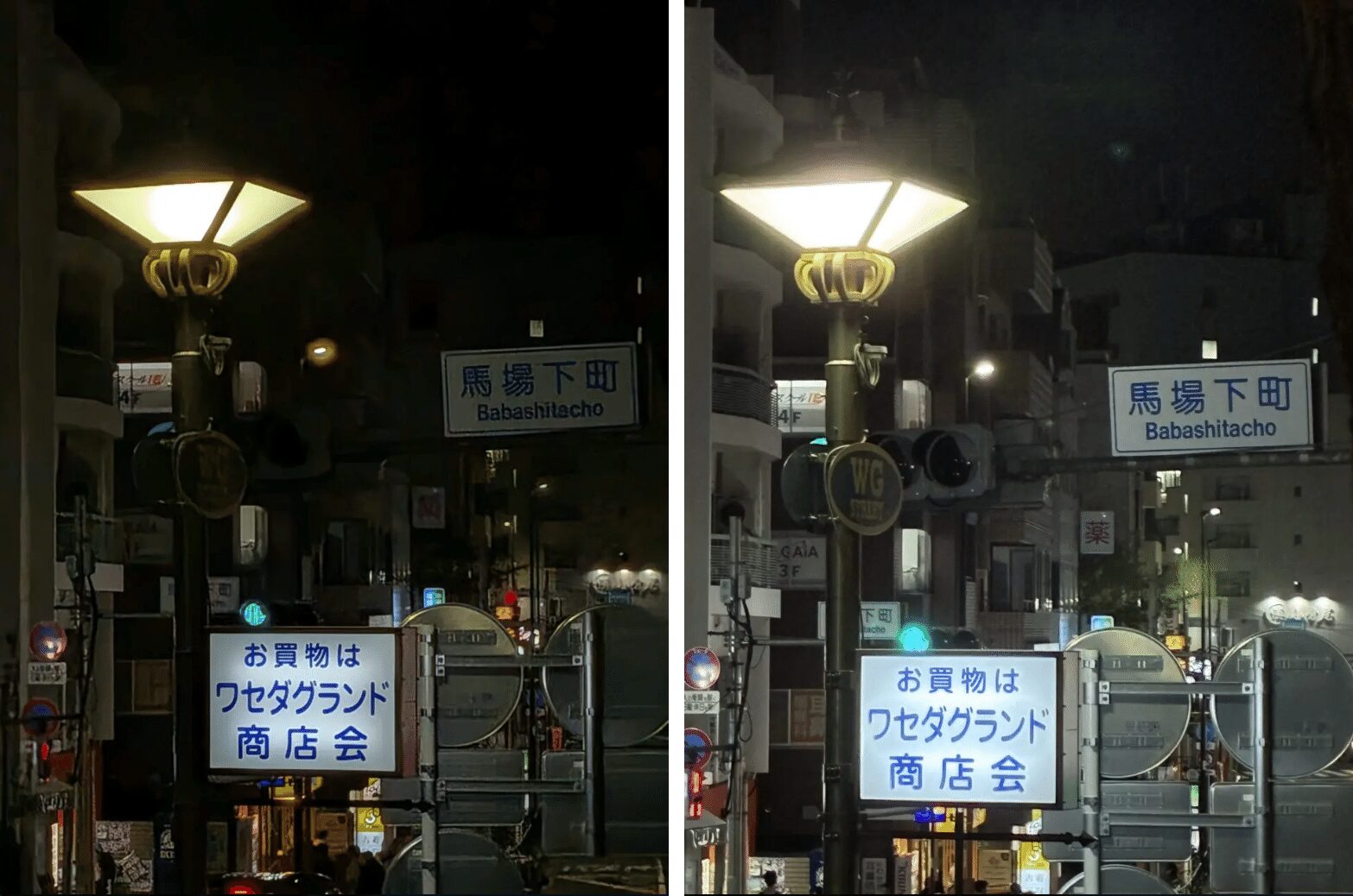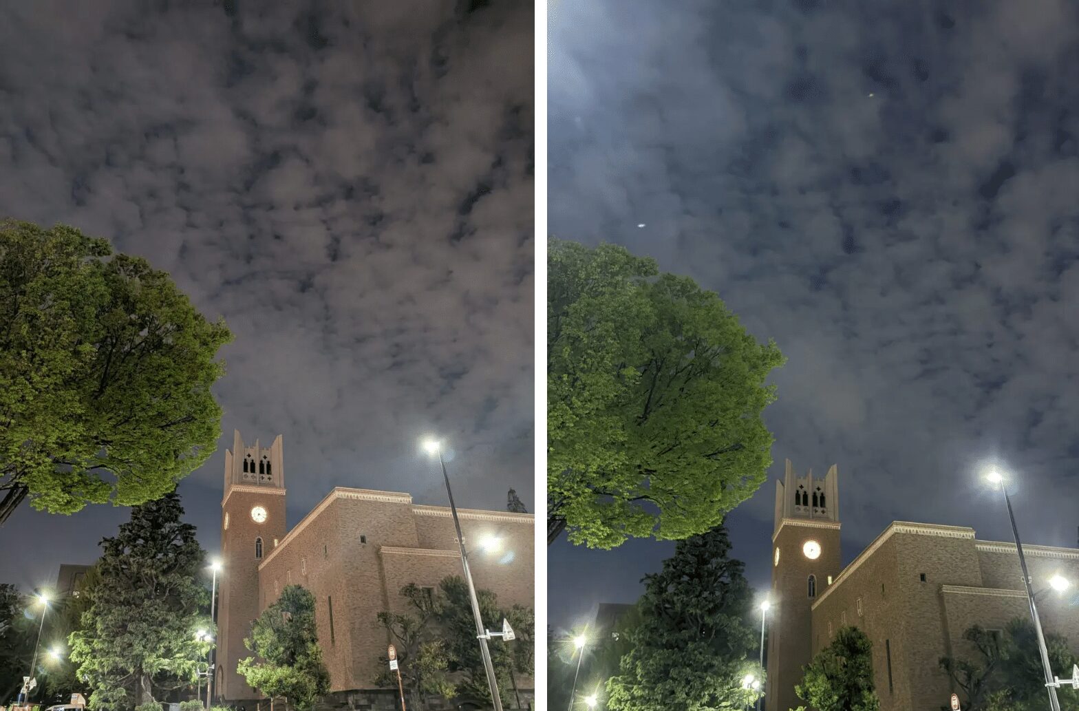 大まかな印象として、昼間はどちらも大差なく、夜間はPixel10aの方が強い。