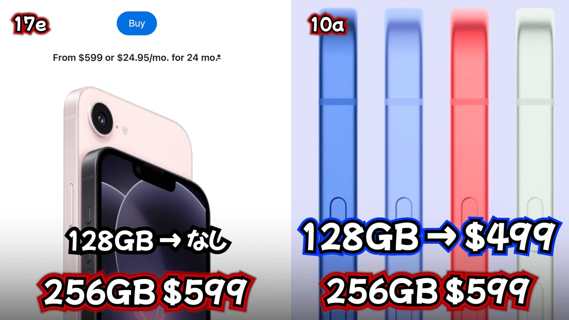 これは元々10aが悪いんじゃなくて17eが頑張っちゃった感じ。最強チップ積んで256GB版を10万まで値下げしてきました。
